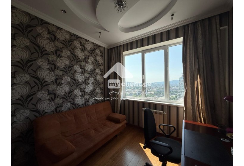 იყიდება 225 კვ.მ, ის გარემონეტებული ბინა საბურთალოზე, კვერნაძის ქუჩაზე ახლადაშენებული კორპუსის მე, 14 სართულზე. დიდი ნახევრად სტუდიოს ტიპის მისაღები ოთახით, ექვსი საძინებლით, ორი სველი წერტილით, ორი დიდი აივნით და ფანტასტიური ხედებით მთელს ქალაქზე. ბინაში არის ცენტრალური გათბობა და იყიდება ავეჯით და ტექნიკით.