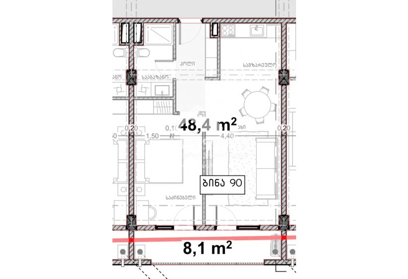 90 კვ.მ ოთახი